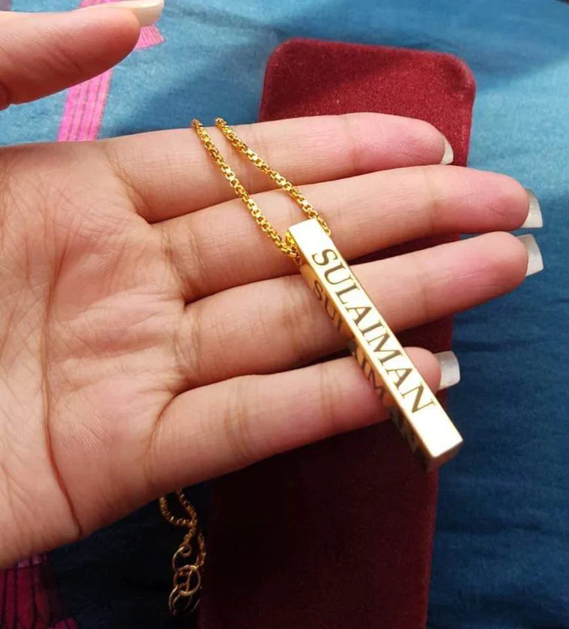 Elevate your style with our Gold 3d Bar Necklace from Zara Jewellers. This striking piece features a dimensional bar pendant in rich gold, offering a contemporary minimalist design that adds sophisticated depth to any outfit.